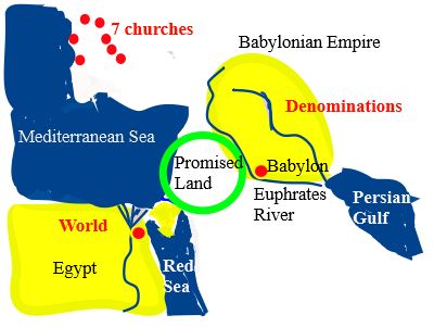 The Promised Land represents Christians today who are trapped between worldly lifestyles of Egypt and the denominational errors and deceptions of Babylon.